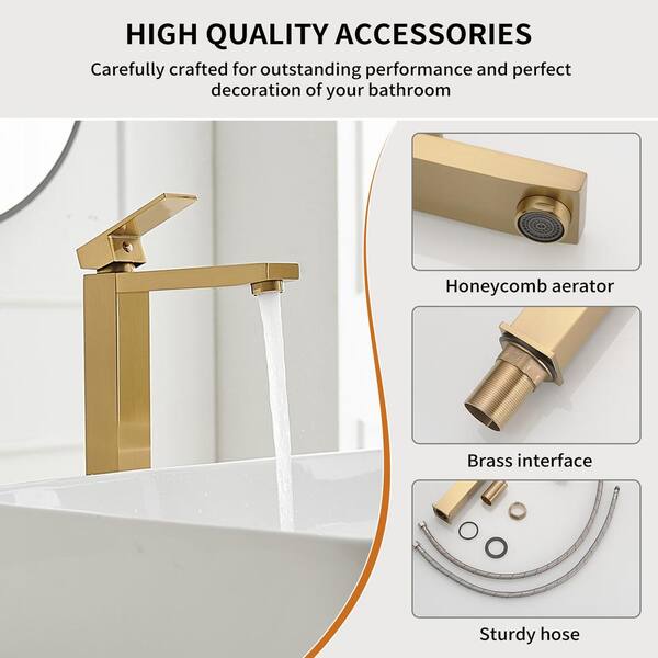 Single Handle Vessel Sink Faucet in Brushed Gold