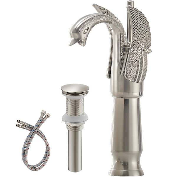 Single Handle Vessel Sink Faucet with Drain Kit in Brushed Nickel