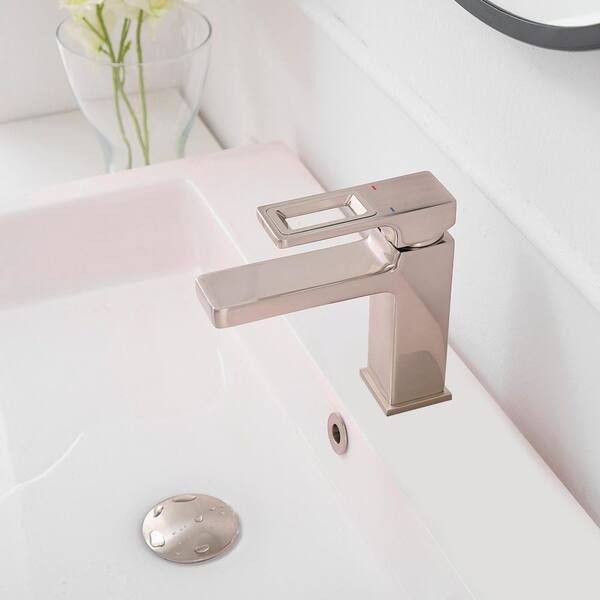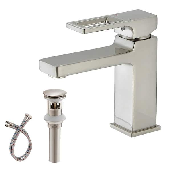 Single Handle Waterfall Bathroom Faucet in Brushed Nickel with Deck Plate and Drain