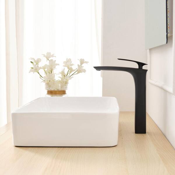 Single Handle Waterfall Vessel Sink Faucet in Matte Black