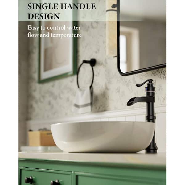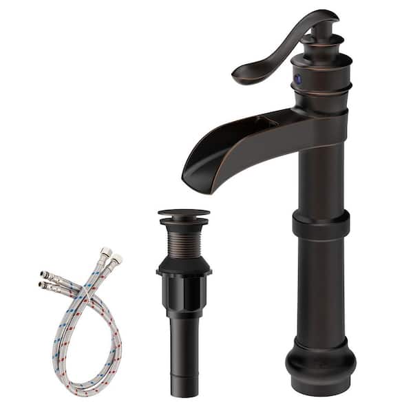 Single Handle Waterfall Vessel Sink Faucet with Drain Kit Included in Oil Rubbed Bronze