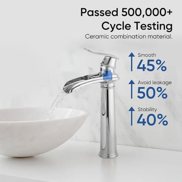 Single Handle Waterfall Vessel Sink Faucet with Drain Kit Included in Polished Chrome