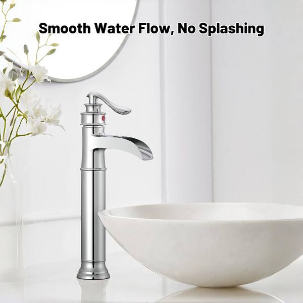 Single Handle Waterfall Vessel Sink Faucet with Drain Kit Included in Polished Chrome