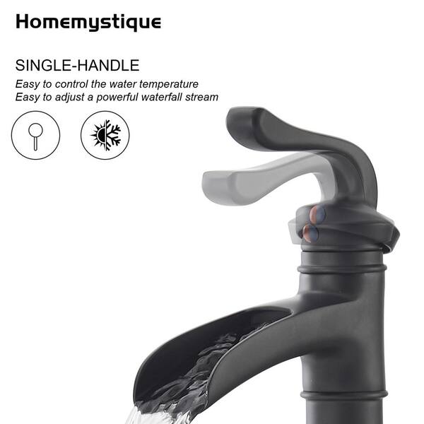 Single-Handle Waterfall Vessel Sink Faucet with Pop-Up Drain and Brass Bathroom Faucet in Matte Black (Valve Included)
