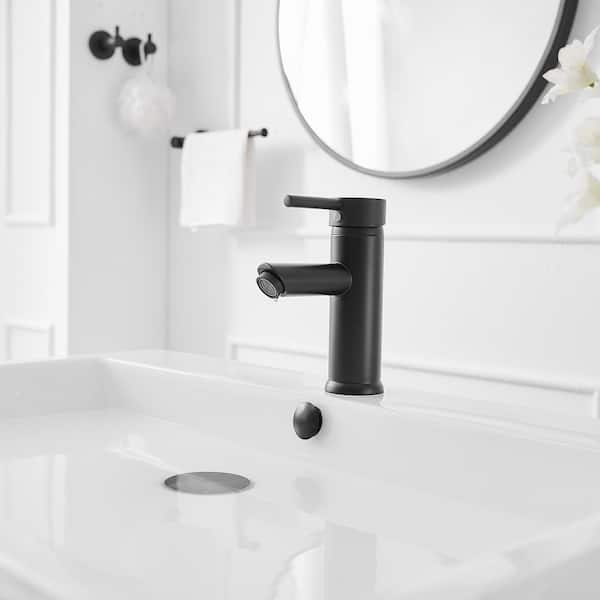 Single Hole Single Handle Bathroom Faucet with Pop Up Drain in Matte Black