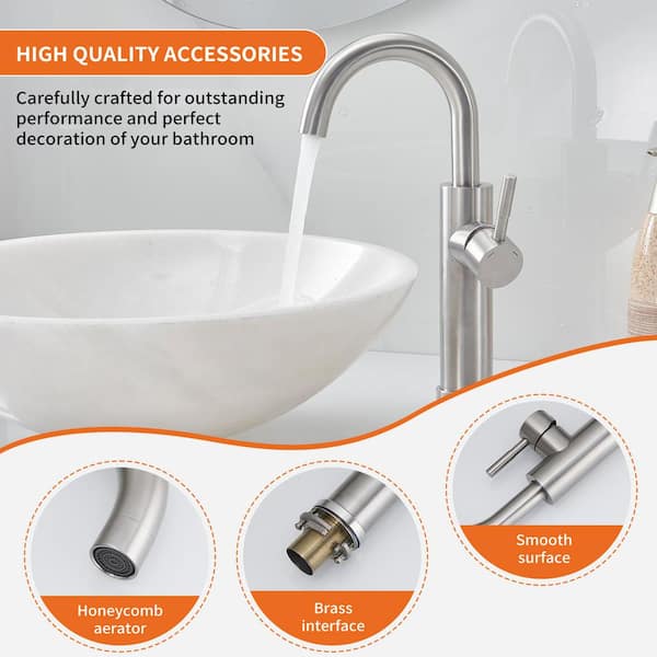 Single Hole Single Handle High Arc Vessel Sink Faucet with Swivel Spout in Brushed Nickel