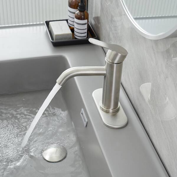 Single Hole Single Handle Waterfall Spout Bathroom Faucet in Brushed Nickel