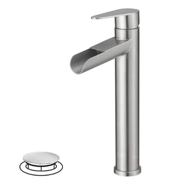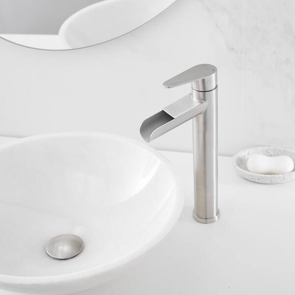 Waterfall Single Handle Vessel Sink Faucet in Brushed Nickel