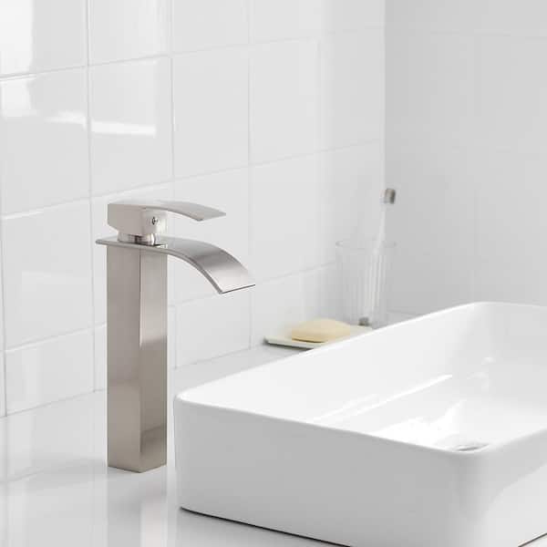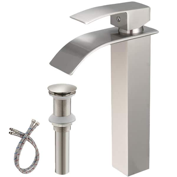 Waterfall Single Hole Single Handle Bathroom Vessel Sink Faucet With Pop-Up Drain Assembly in Brushed Nickel