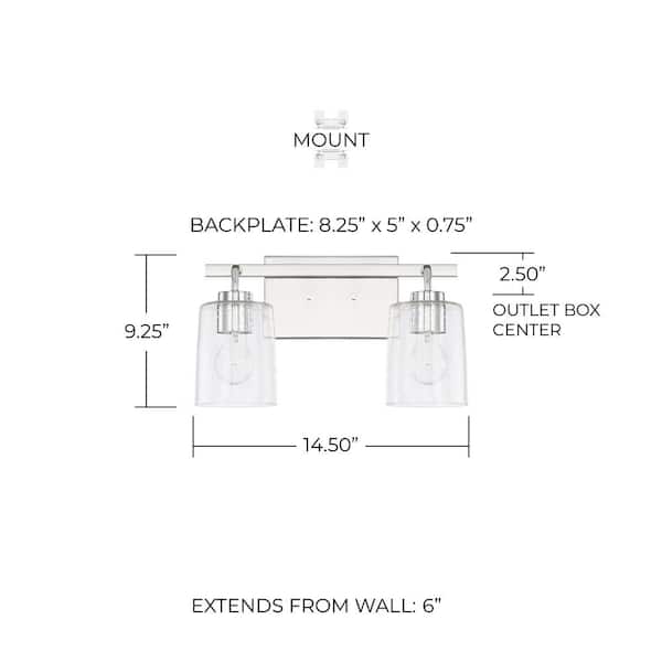14.5 in. W x 9 in. H x 6 in. E 2-Light Clear Seeded Glass Vanity Light in Chrome