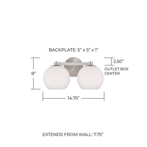 14.75 in. W x 8 in. H 2-Light Circular Globe Vanity Light in Brushed Nickel with Soft White Glass