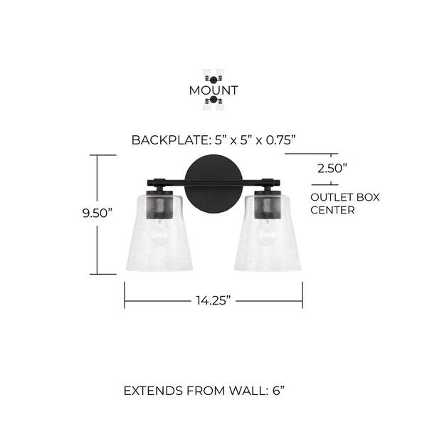 14 in. W x 9.5 in. H 2-Light Vanity Light in Matte Black with Clear Seeded Glass