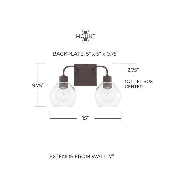 15 in. W x 10 in. H x 7 in. E 2-Light Clear Glass Vanity Light in Bronze