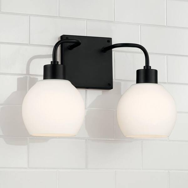 15 in. W x 9.75 in. H 2-Light Vanity in Matte Black with Soft White Glass Globes