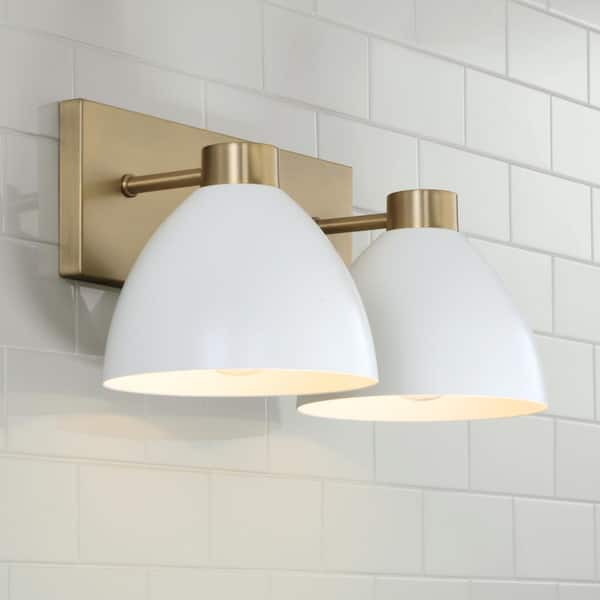16.50 in. W x 8 in. H 2-Light Vanity in Aged Brass and White