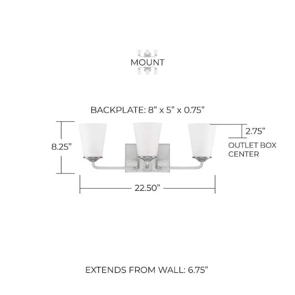 22.5 in. W x 8 in. H x 7 in. E 3-Light Vanity Light in Brushed Nickel with Soft White Glass Shade
