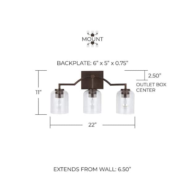 22 in. W x 11 in. H x 6.5 in. E 3-Light Clear Seeded Glass Vanity Light in Bronze