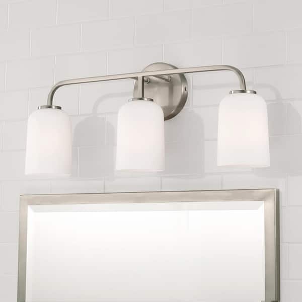 23.5 in. W x 9.75 in. H 3-Light Vanity in Brushed Nickel with Soft White Glass