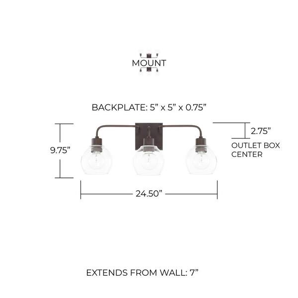 24.5 in. W x 10 in. H x 7 in. E 3-Light Clear Glass Vanity Light in Bronze