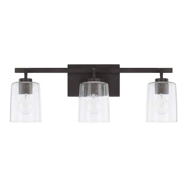 24.5 in. W x 9 in. H x 6 in. E 3-Light Clear Seeded Glass Vanity in Bronze