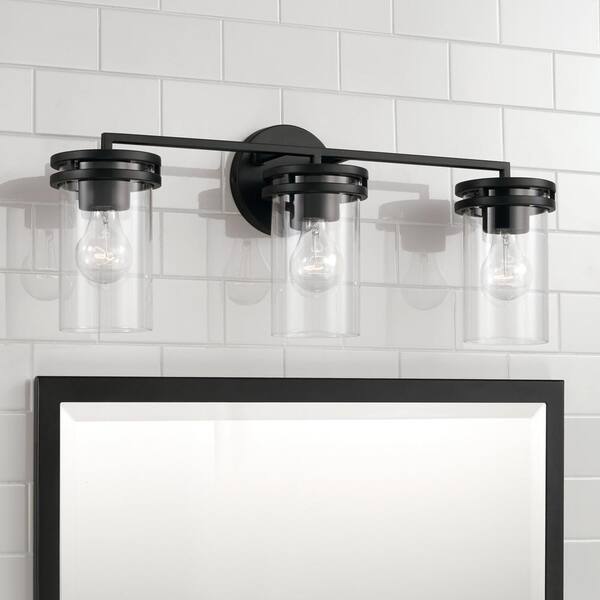 24 in. W x 9.75 in. H 3-Light Vanity in Matte Black with Clear Glass