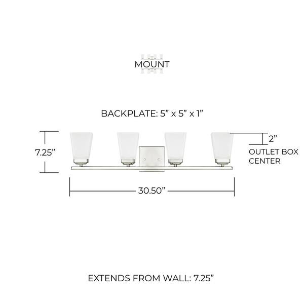 30.5 in. W x 7 in. H x 7 in. E 4-Light Vanity Light in Polished Nickel with Soft White Glass Shade