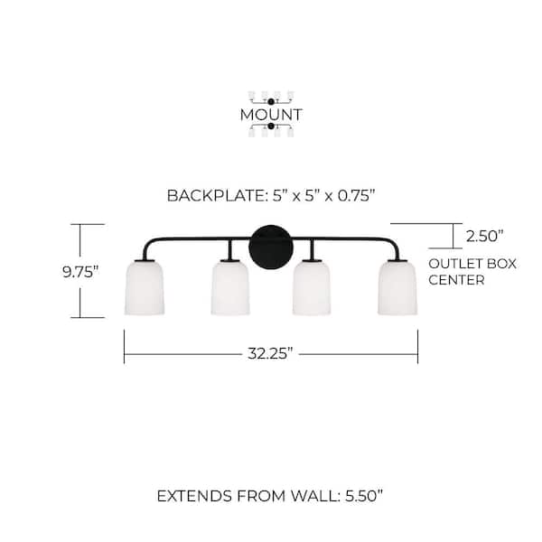32.25 in. W x 9.75 in. H 4-Light Vanity Light in Matte Black with Soft White Glass