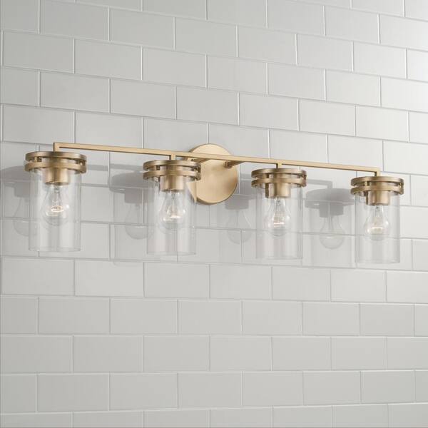 33.5 in. W x 9.75 in. H 4-Light Vanity in Aged Brass with Clear Glass