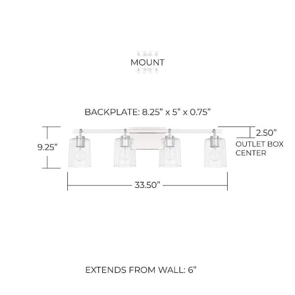 34.5 in. W x 9 in. H x 6 in. E 4-Light Clear Seeded Glass Vanity in Chrome