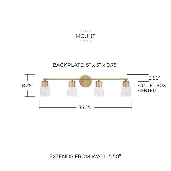 35.25 in. W x 8.25 in. H 4-Light Vanity Light in Aged Brass with Clear Glass