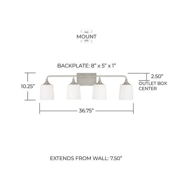 36.75 in. W x 10.25 in. H 4-Light Vanity Light in Brushed Nickel with Soft White Glass