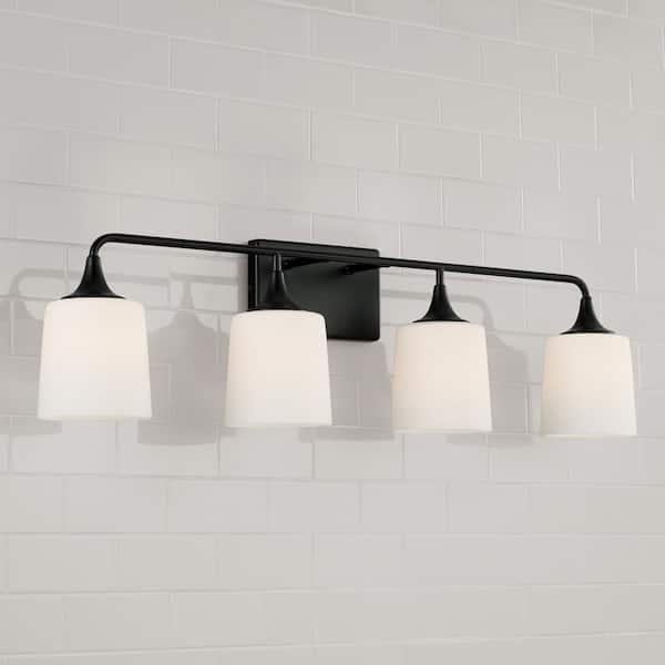 36.75 in. W x 10.25 in. H 4-Light Vanity in Matte Black with Soft White Glass