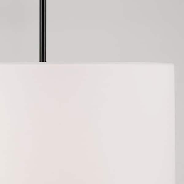 Alan 18 in. W x 9 in. H 3-Light Pendant in Matte Black with White Fabric Drum Shade and Acrylic Diffuser