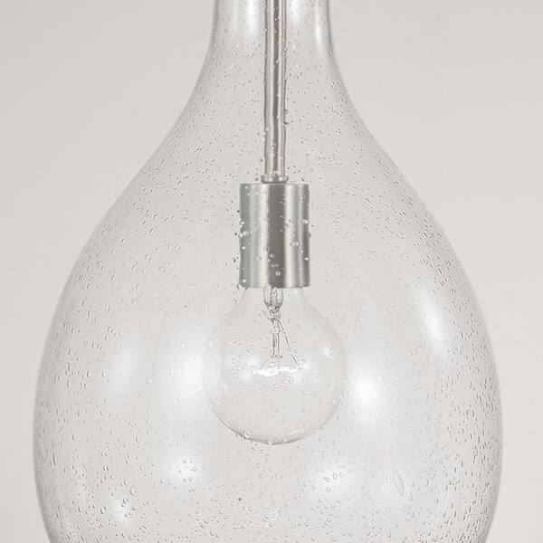 Brentwood 9.75 in. W x 18 in. H 1-Light Pendant in Brushed Nickel with Clear Seeded Teardrop Glass