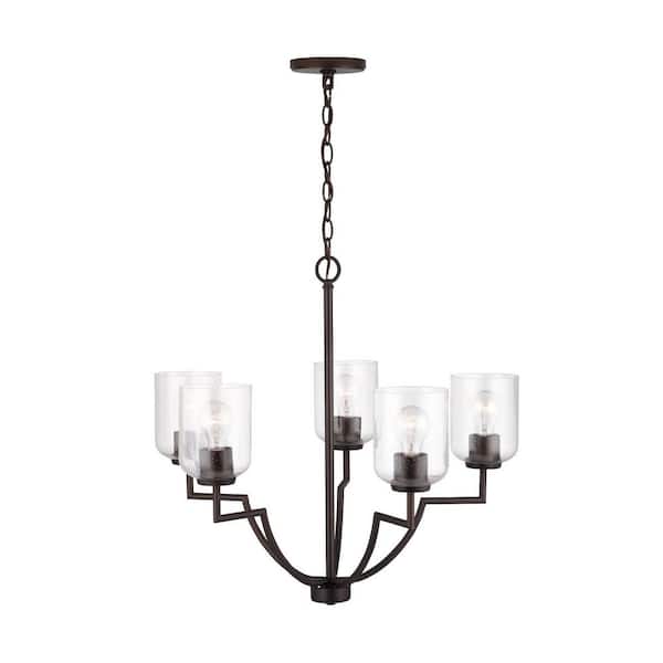 Carter 26 in. W x 24 in. H 5-Light Clear Seeded Glass Chandelier in Bronze