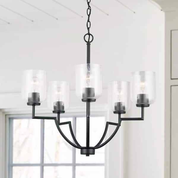 Carter 26 in. W x 24 in. H 5-Light Clear Seeded Glass Chandelier in Matte Black