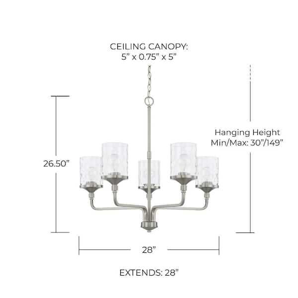 Colton 28 in. W x 26.5 in. H 5-Light Clear Water Glass Chandelier in Brushed Nickel