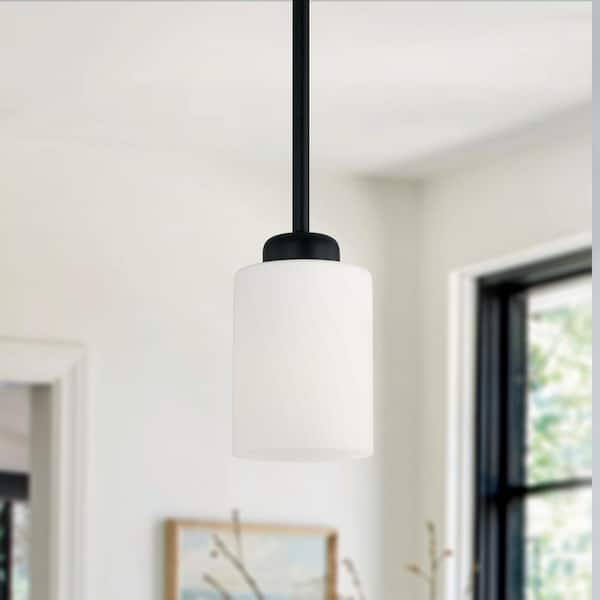 Dixon 5 in. W x 6.5 in. H 1-Light Soft White Glass Pendant in Matte Black