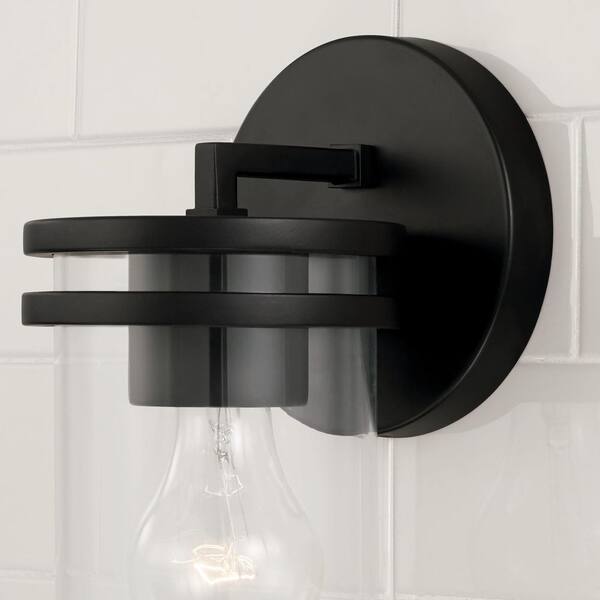 Fuller 5 in. 1-Light Sconce in Matte Black with Clear Glass