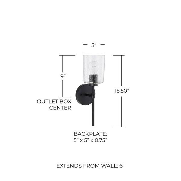 Greyson 5 in. 1-Light Clear Seeded Glass Sconce in Matte Black
