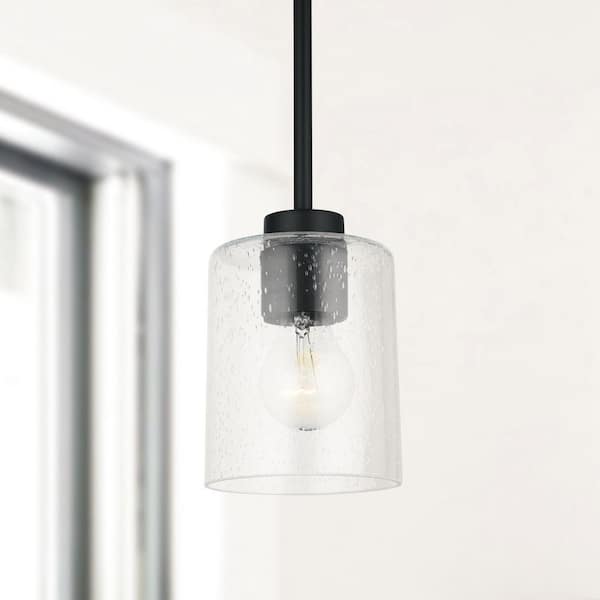 Greyson 5 in. W x 7 in. H 1-Light Clear Seeded Glass Pendant in Matte Black