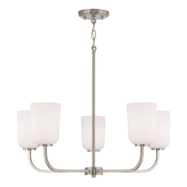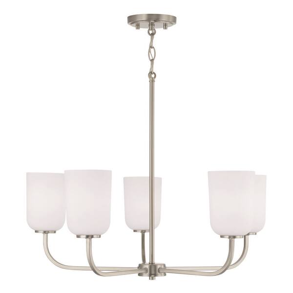 Lawson 5-Light Brushed Nickel 26 in. W x 19.75 in. H Chandelier with Soft White Glass