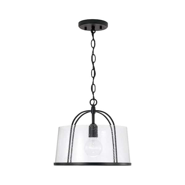 Madison 13 in. 1-Light Matte Black Transitional Semi Flush Mount With Clear Seeded Glass Shade and No Bulbs Included