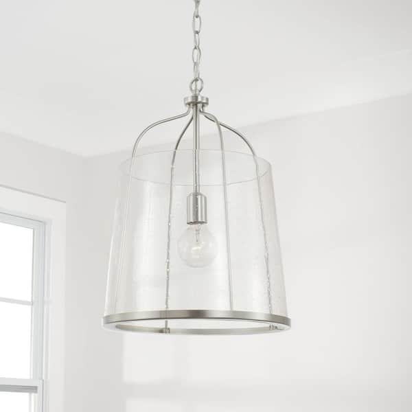 Madison 14 in. W x 19 in. H 1-Light Pendant in Brushed Nickel with Clear Seeded Glass