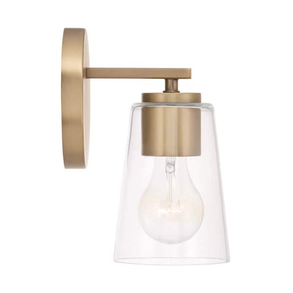 Portman 5 in. 1-Light Sconce in Aged Brass with Clear Glass