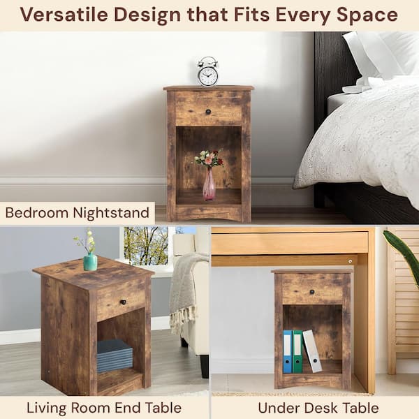 1-Drawer Rustic Brown 15.74 in. W Rectangle MDF End Table, Engineered Wood Lateral 2-Tier Side Table