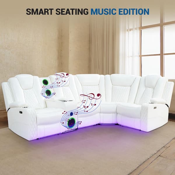 110.63 in. Theater-Style Air Leather Reclining Sectional Sofa with Adjustable Headrests-5-Seater in White