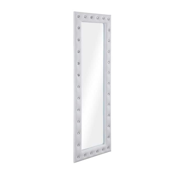 22 in. x 64 in. Classic Rectangle Framed White Tufted Leaning Mirror