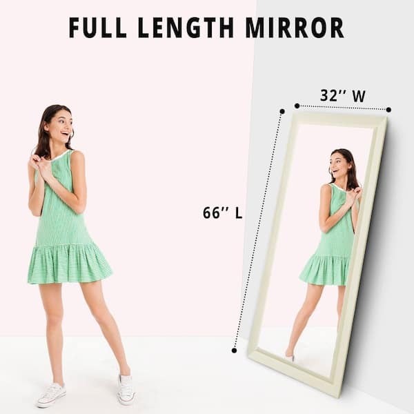 32 in. x 66 in. Rustic Rectangle Framed White Floor Leaning Mirror