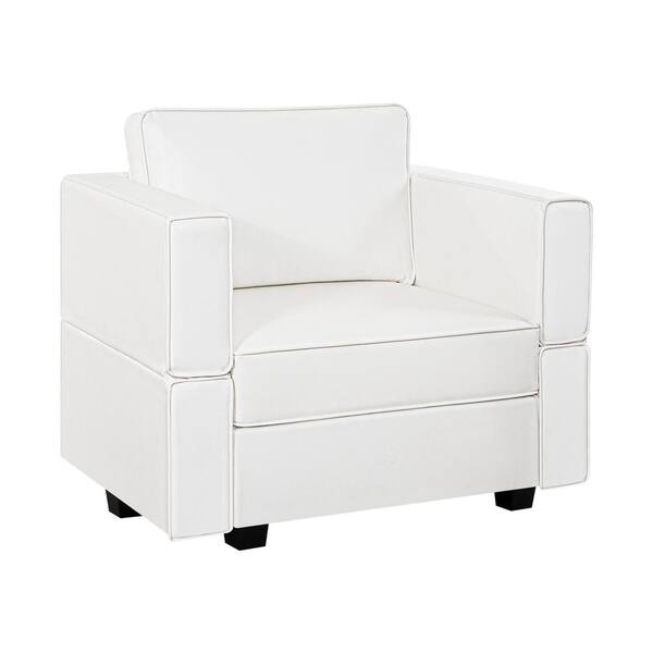 35.82 in. Faux Leather Accent Chair Streamlined Comfort for Your Sectional Sofa in White
